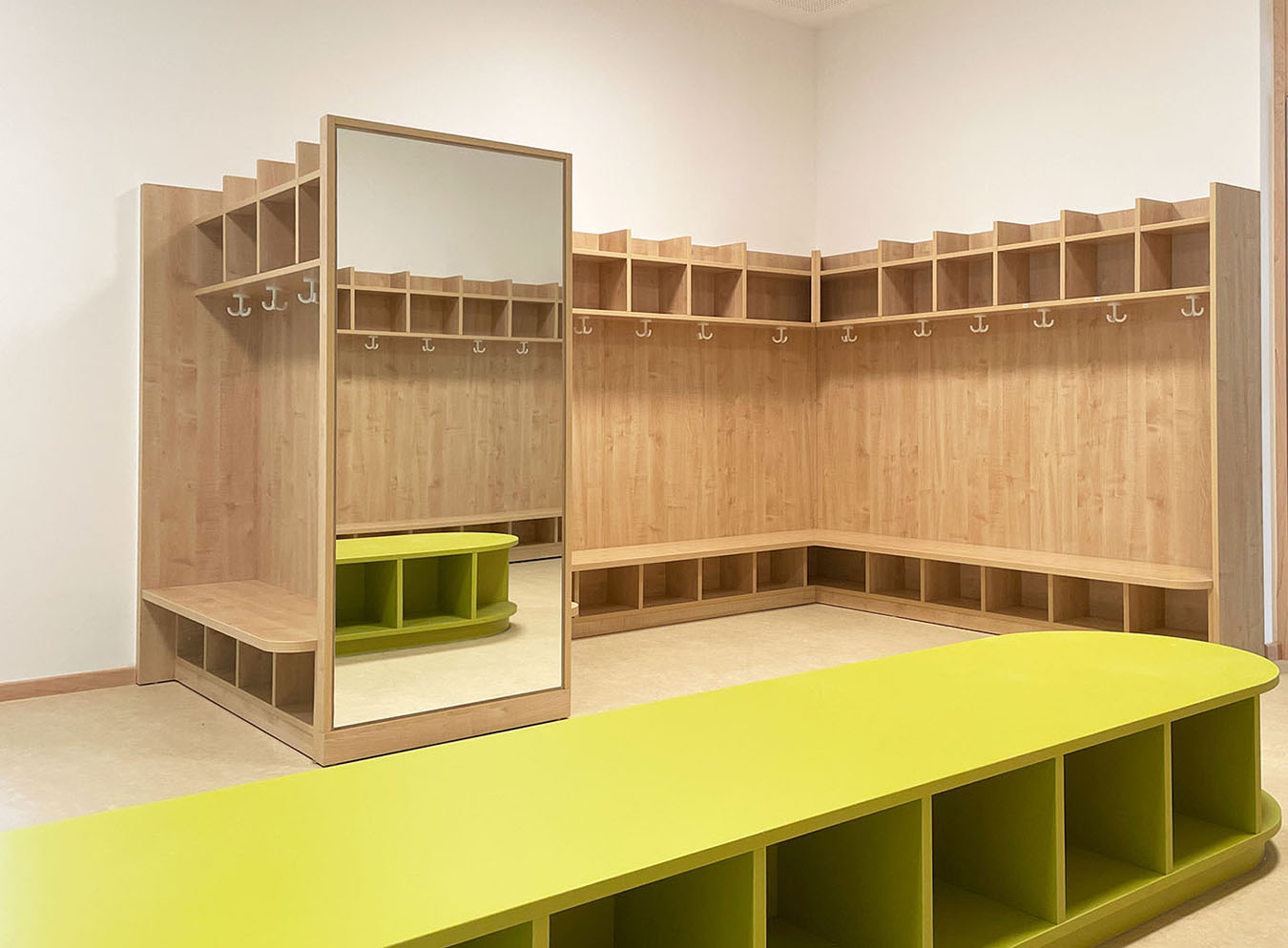Die Kinder werden gemäß dem pädagogischen Konzept der Kita in altersübergreifenden Abteilungen betreut. In den ergänzenden Mehrzweckräumen können zusätzlich individuelle und flexible Angebote erfüllt werden.